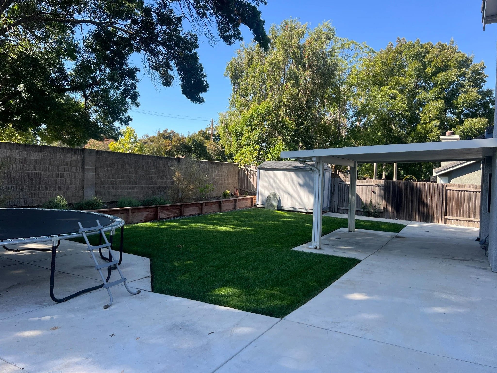 Enjoy low-maintenance landscaping in both front and back yards. The expansive backyard boasts a large covered patio, storage shed, generous lawn, and raised planter beds along the fence, perfect for gardening or entertaining.