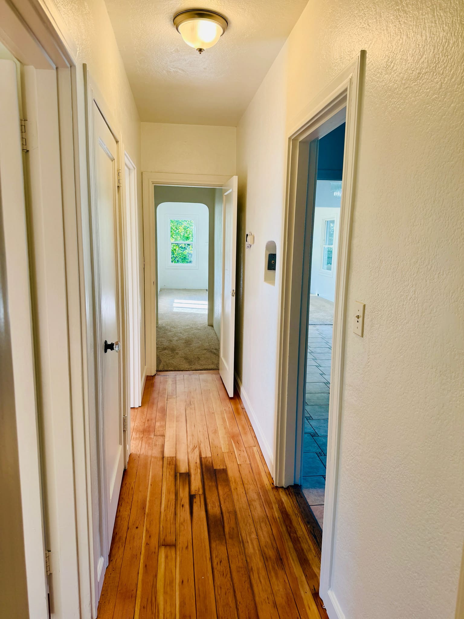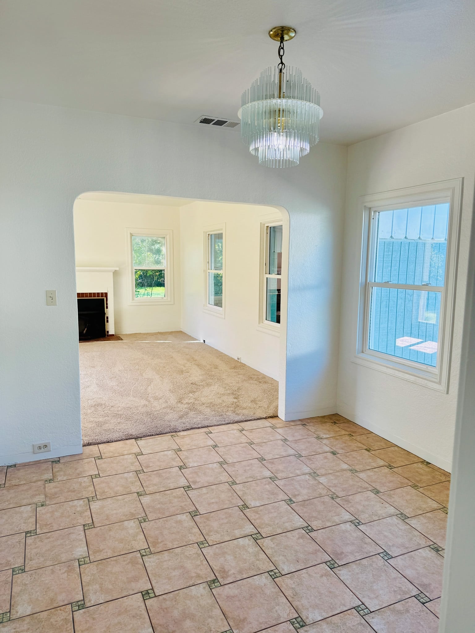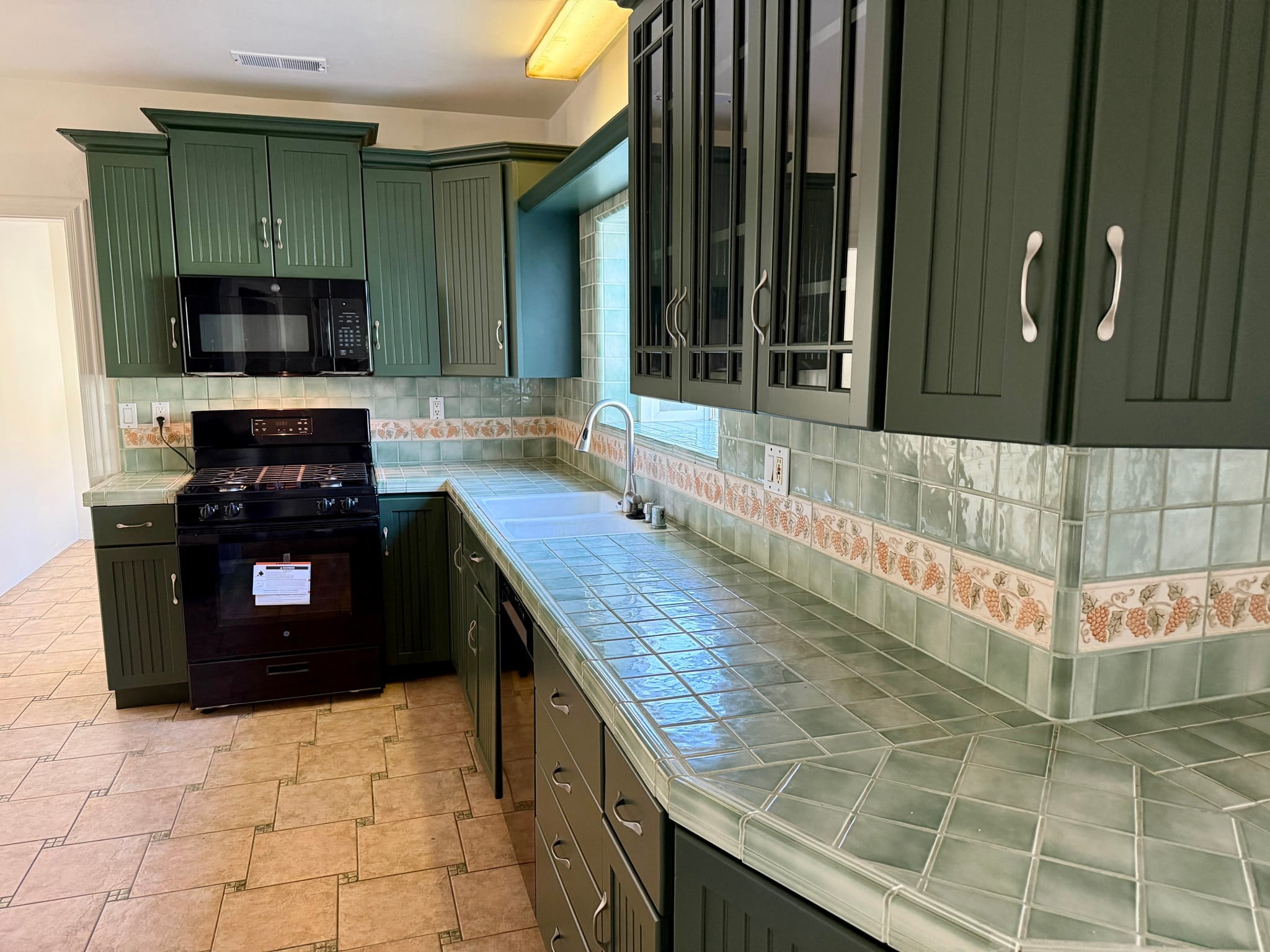 The property has new carpet, refinished hardwood Fir floors, fresh interior paint throughout and an updated eat-in kitchen with porcelain tiled countertops & floors and new appliances.