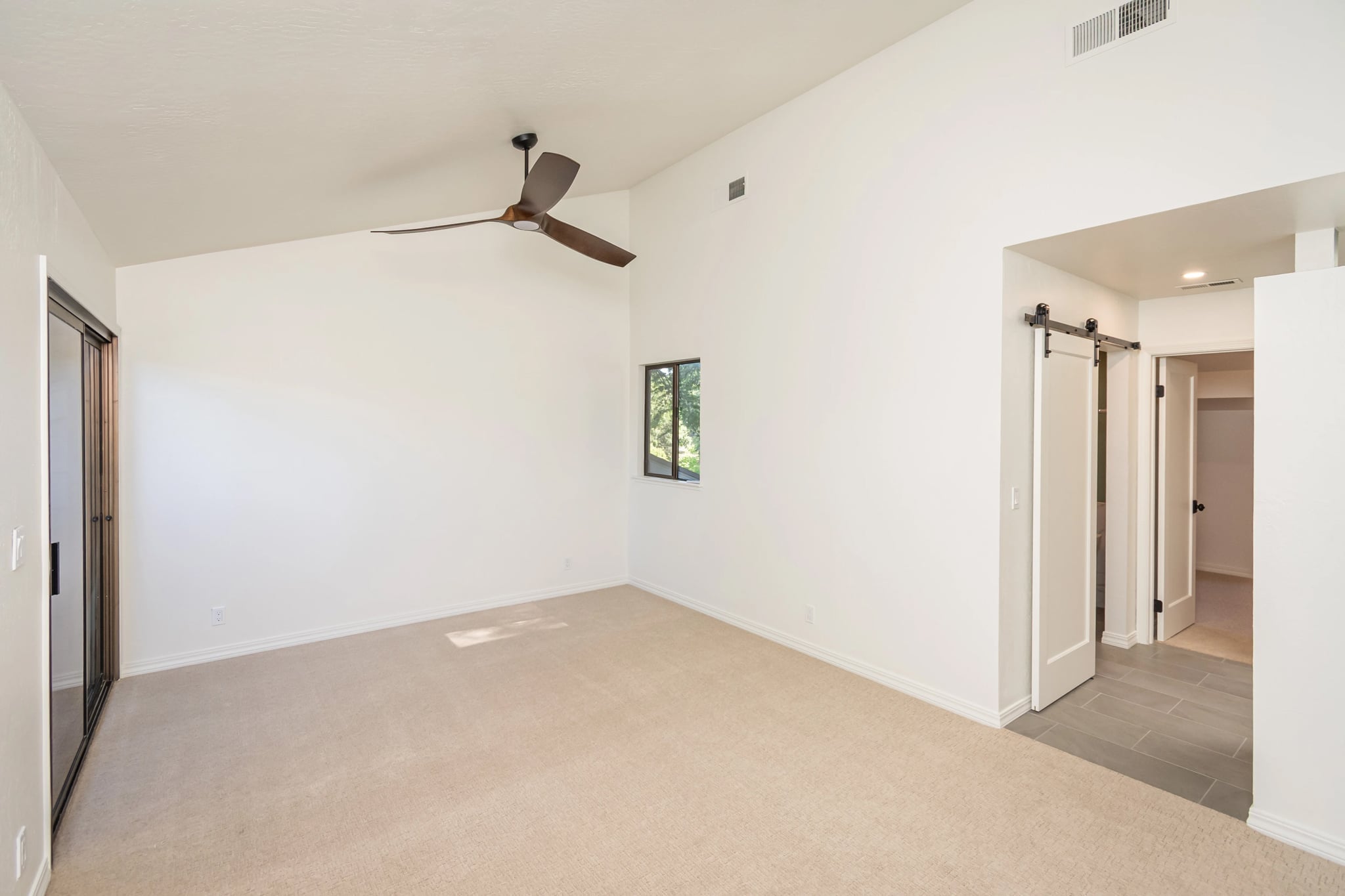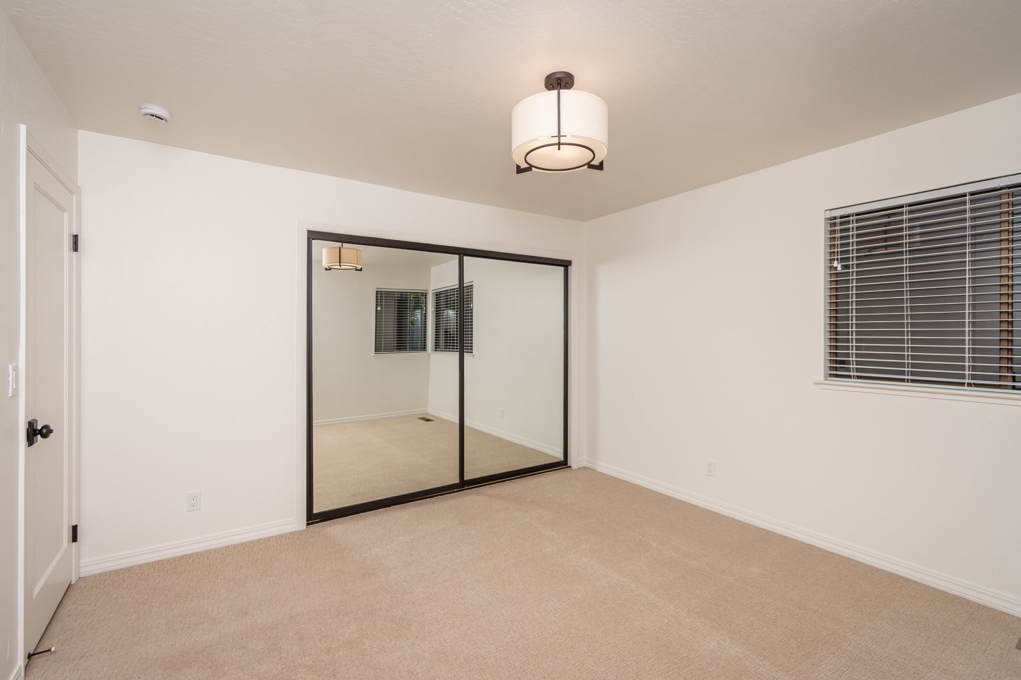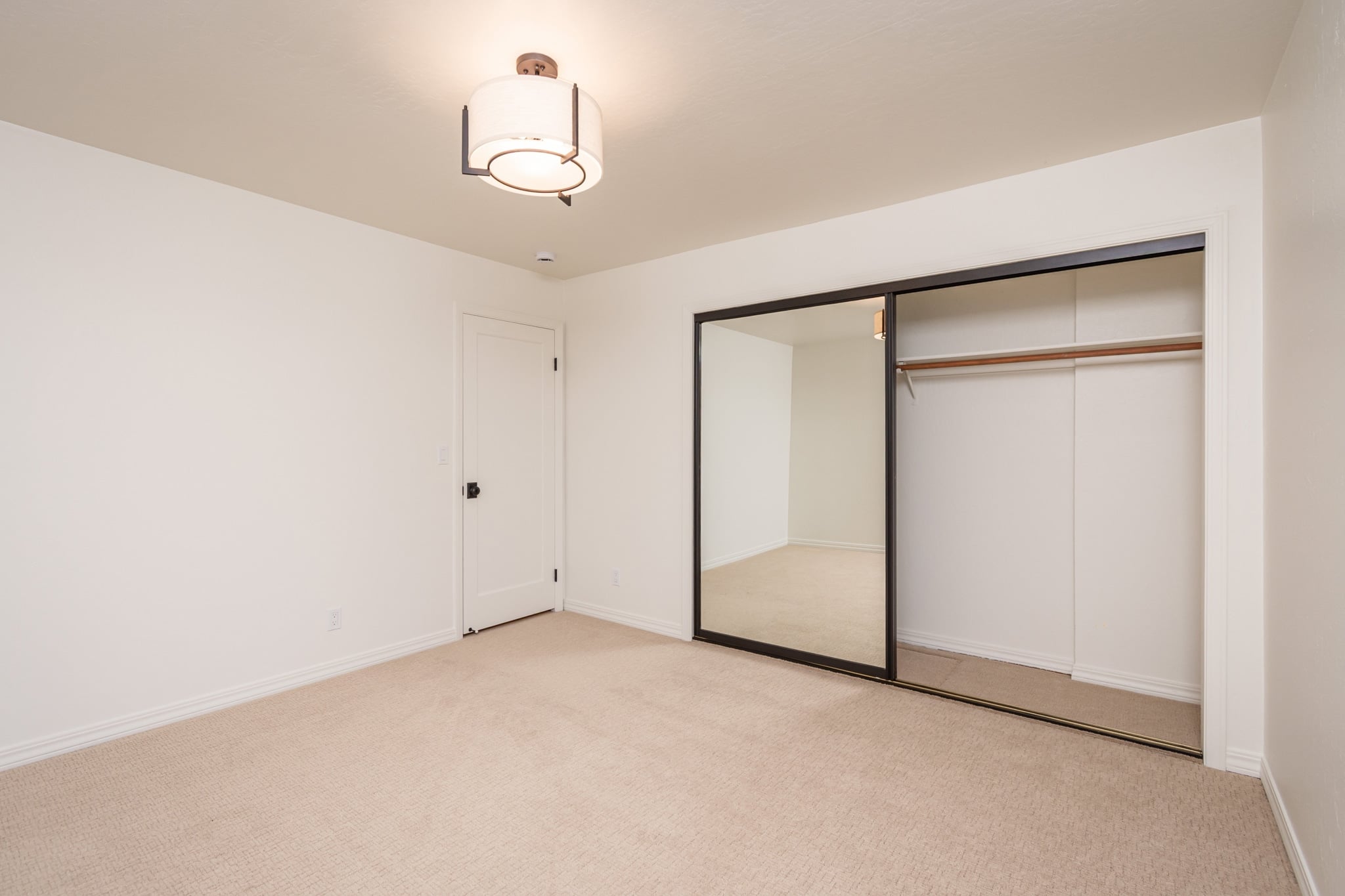 The main level includes a spacious Eastern facing bedroom with large closet graced by built-in clothing organizer. Also enjoy an upgraded bathroom with composite stone countertops and walk-in quartz shower. This level also includes entry to an oversized 2car garage and separate spacious indoor laundry room with washer/dryer set.