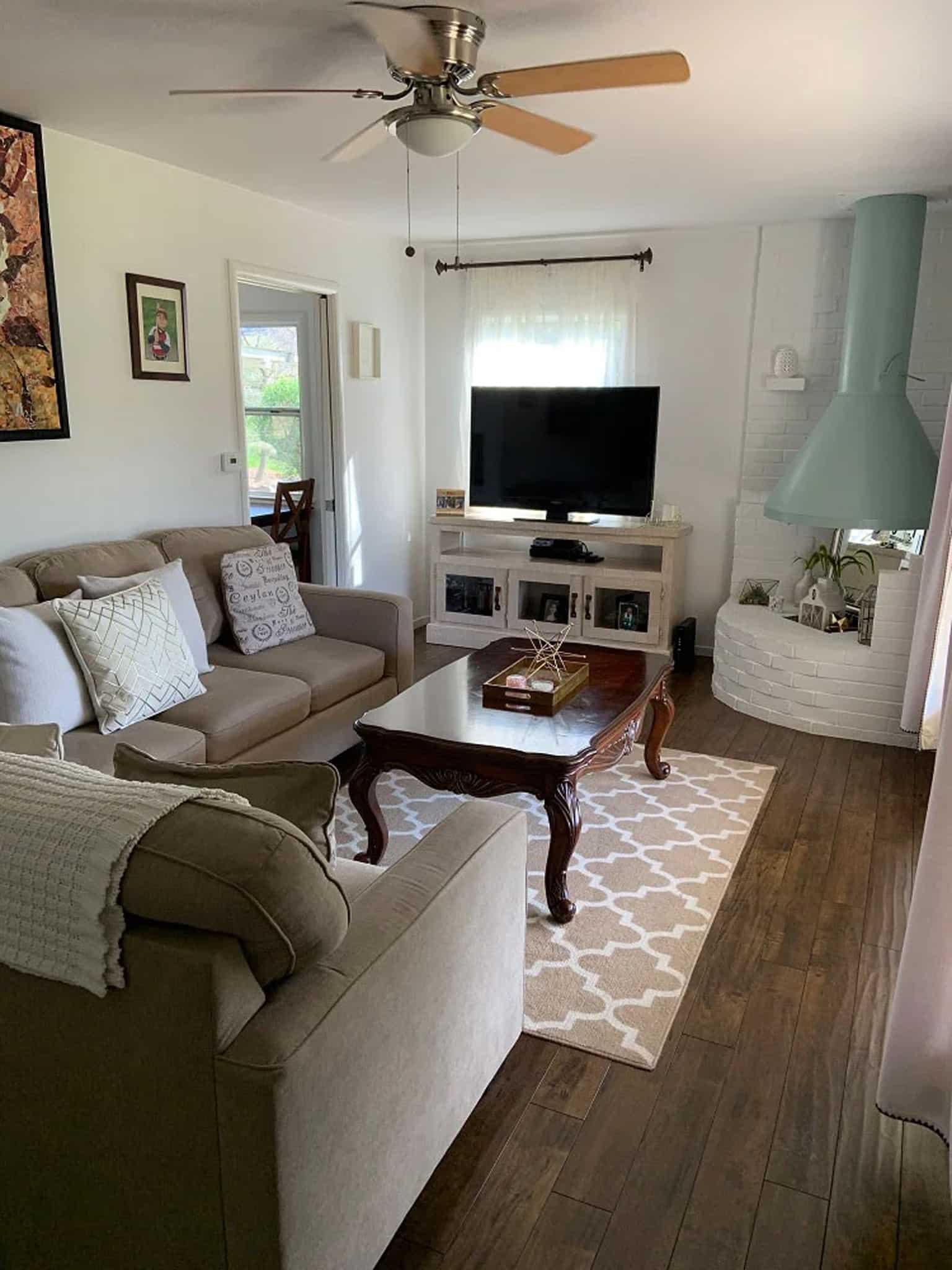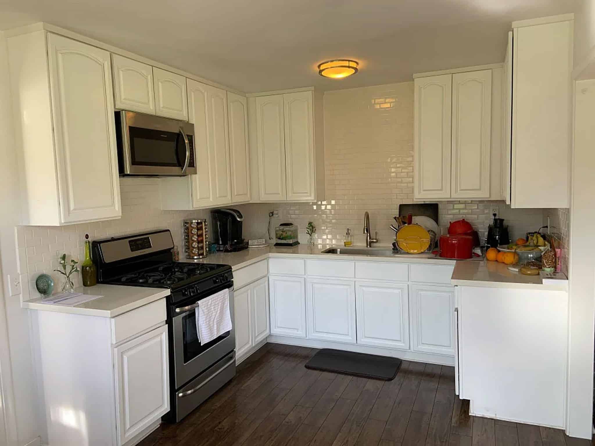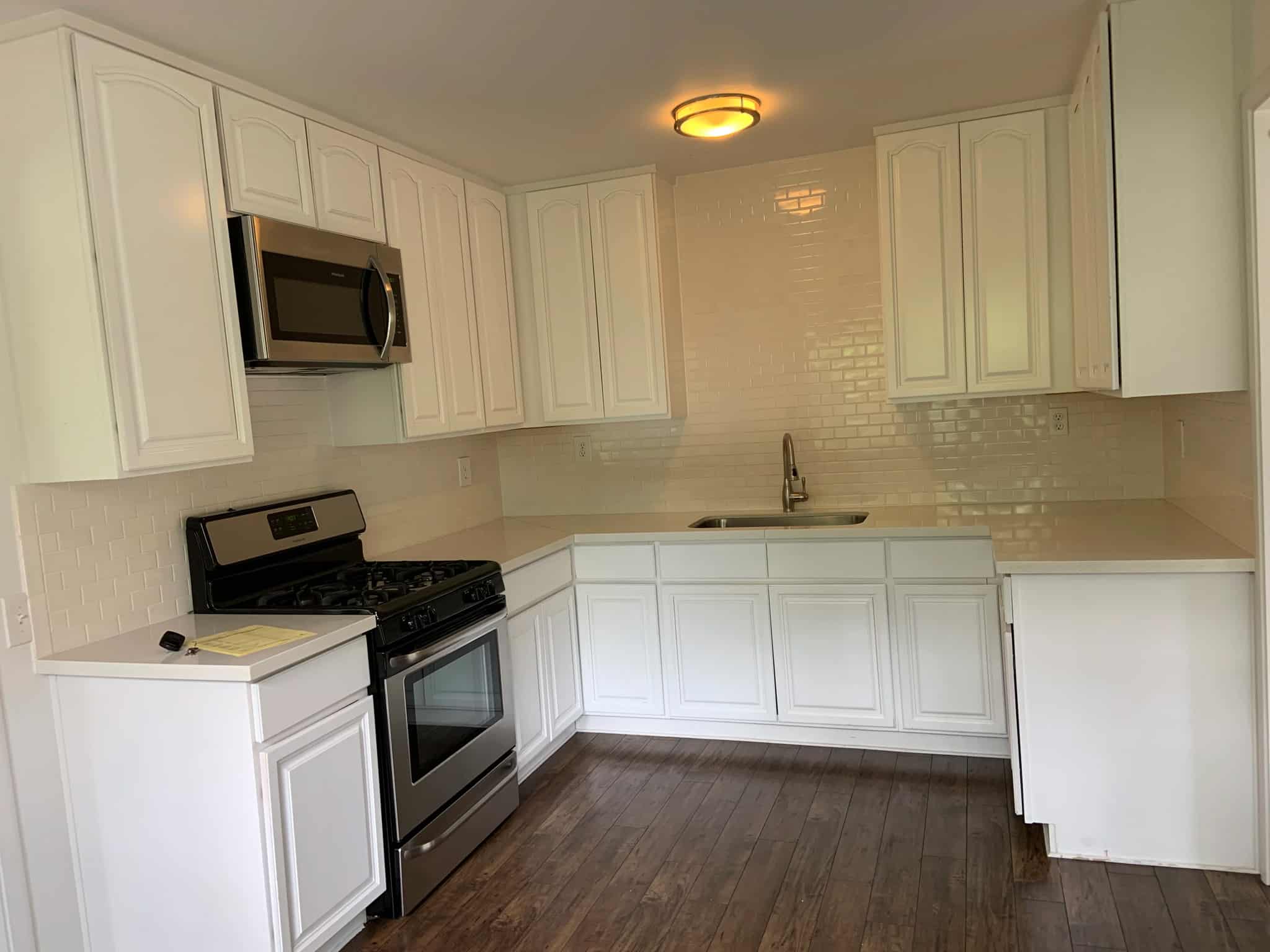 The home includes beautiful dark wood flooring throughout, a decorative fireplace, large picture windows and an eat-in kitchen with stainless steel gas range/venting microwave, stainless steel refrigerator, quartz counter-tops and custom cabinetry. Also enjoy the small bonus room/laundry room with washer/dryer and wall to wall windows offering all-day sunlight. This area is a perfect space for small office or home gym.