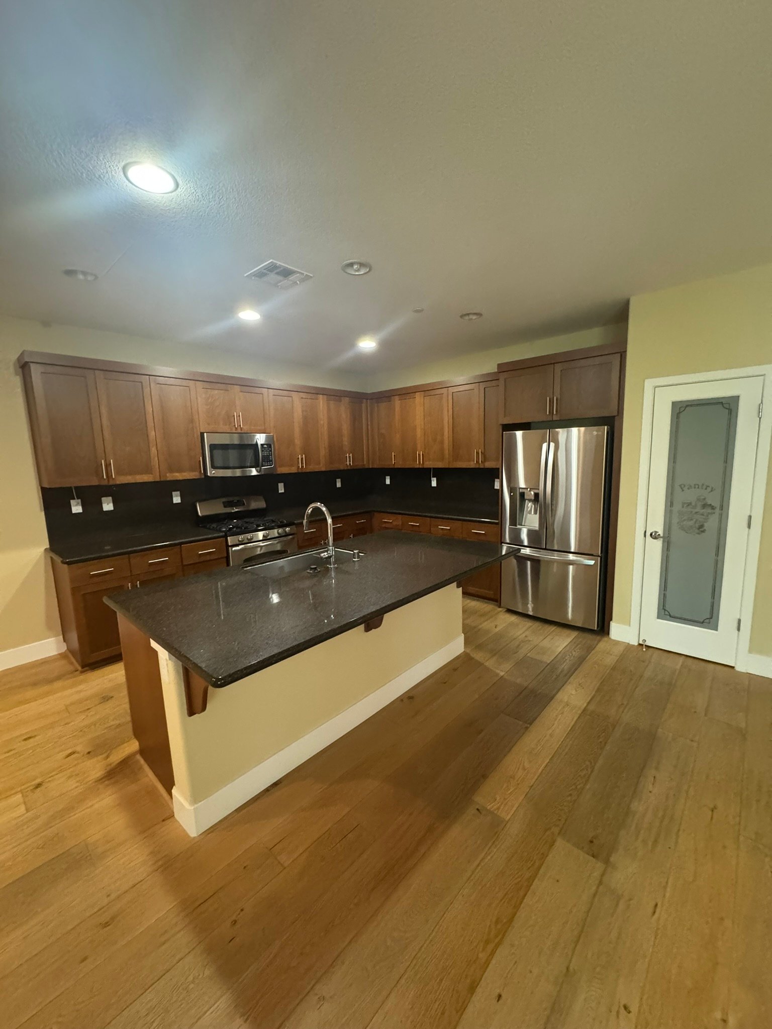 Spacious and inviting, this single-level Napa home offers 2,227 sq ft of living space with three bedrooms and two bathrooms. Featuring light wood flooring and an open floor plan, the home includes a large kitchen island, granite countertops, and stainless steel appliances—including refrigerator, dishwasher, range, and microwave combo. The dining room, cozy fireplace, and dedicated office space add comfort and versatility. The primary bedroom is generously sized, and the laundry room comes equipped with a washer and dryer. Enjoy a low-maintenance backyard and the convenience of central heat and air.