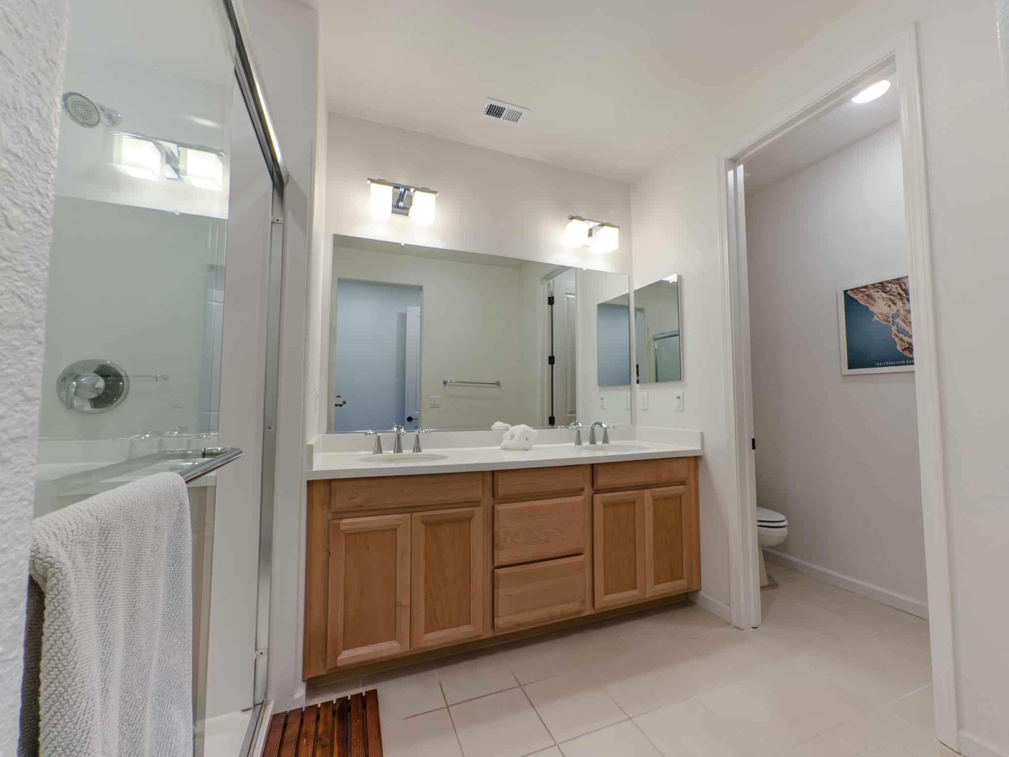 Each bedroom includes its own private 3/4 bathroom (sink, shower, toilet). A 3/4 bath located on the main level and washer/dryer located at the master bedroom level ensures guests and residents alike enjoy complete comfort.