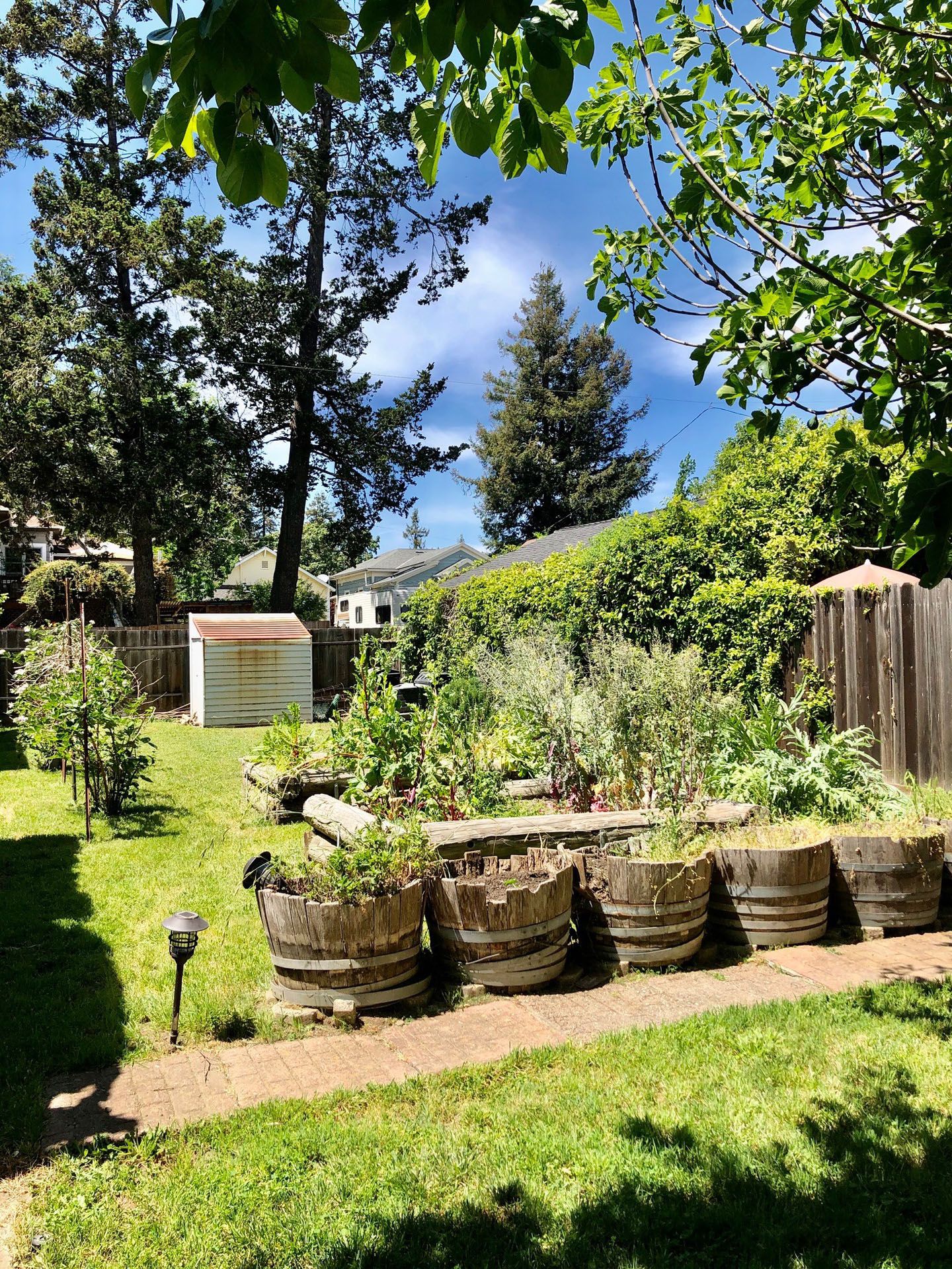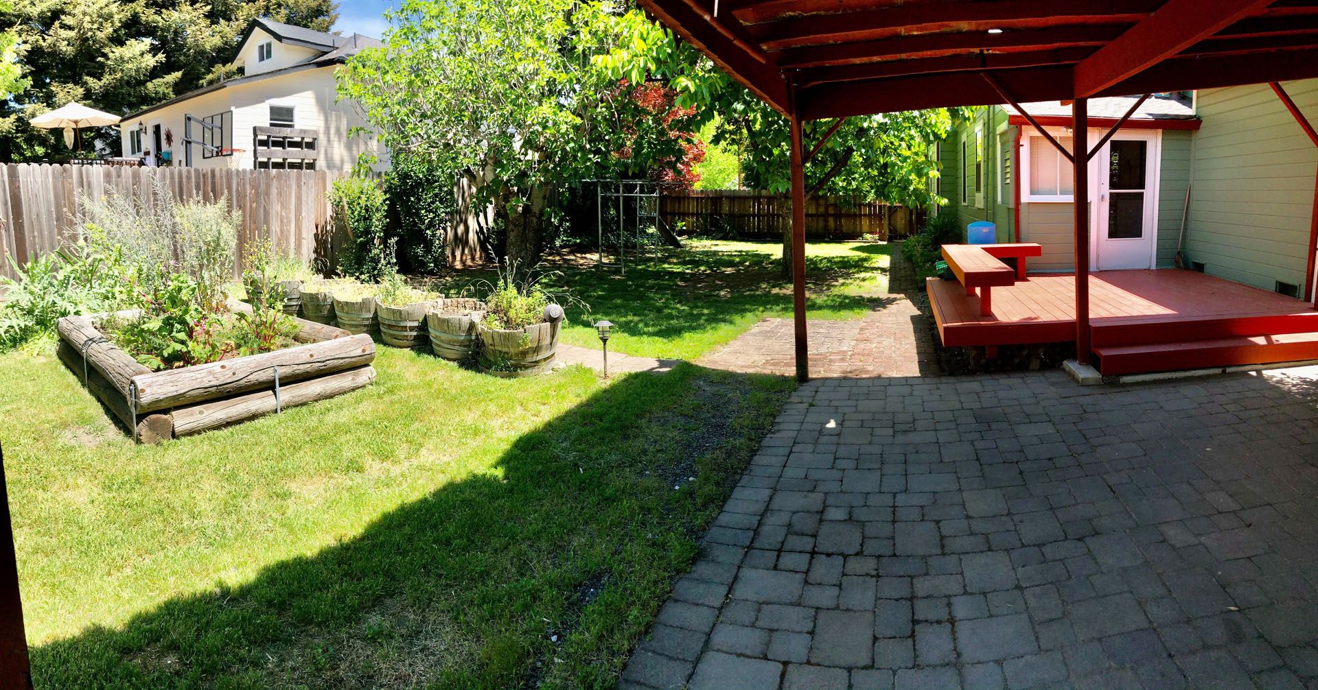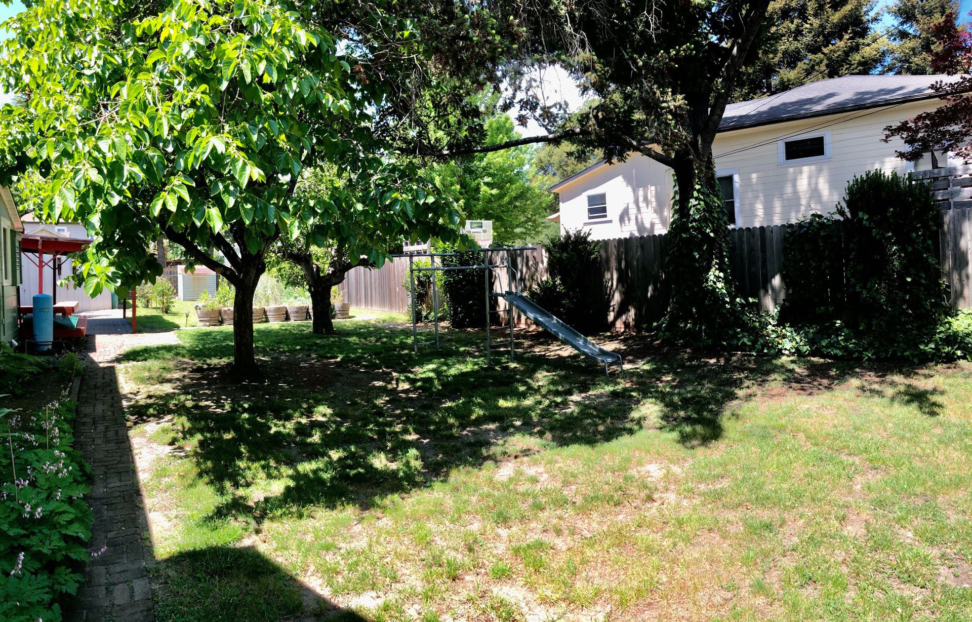 - Spacious & Private Backyard with mature fruit trees and raised beds