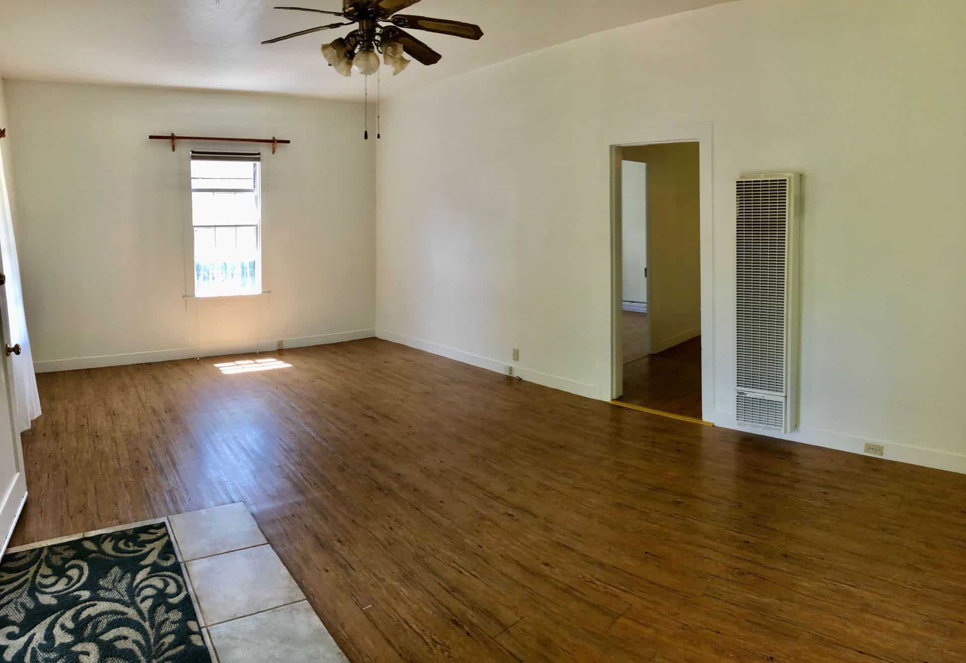 The kitchen has been updated with stylish countertops, and the home comes equipped with essential appliances, including a refrigerator, gas range, and a washer/dryer (provided “as is”). A dishwasher is also available, though it’s provided “as is” as well. For comfort, the house features wall furnace and baseboard heating, plus ceiling fans throughout. Enjoy a spacious, private backyard perfect for outdoor relaxation with mature fruit trees and raised garden beds. Yard service is included, and irrigation is supplied by well water.