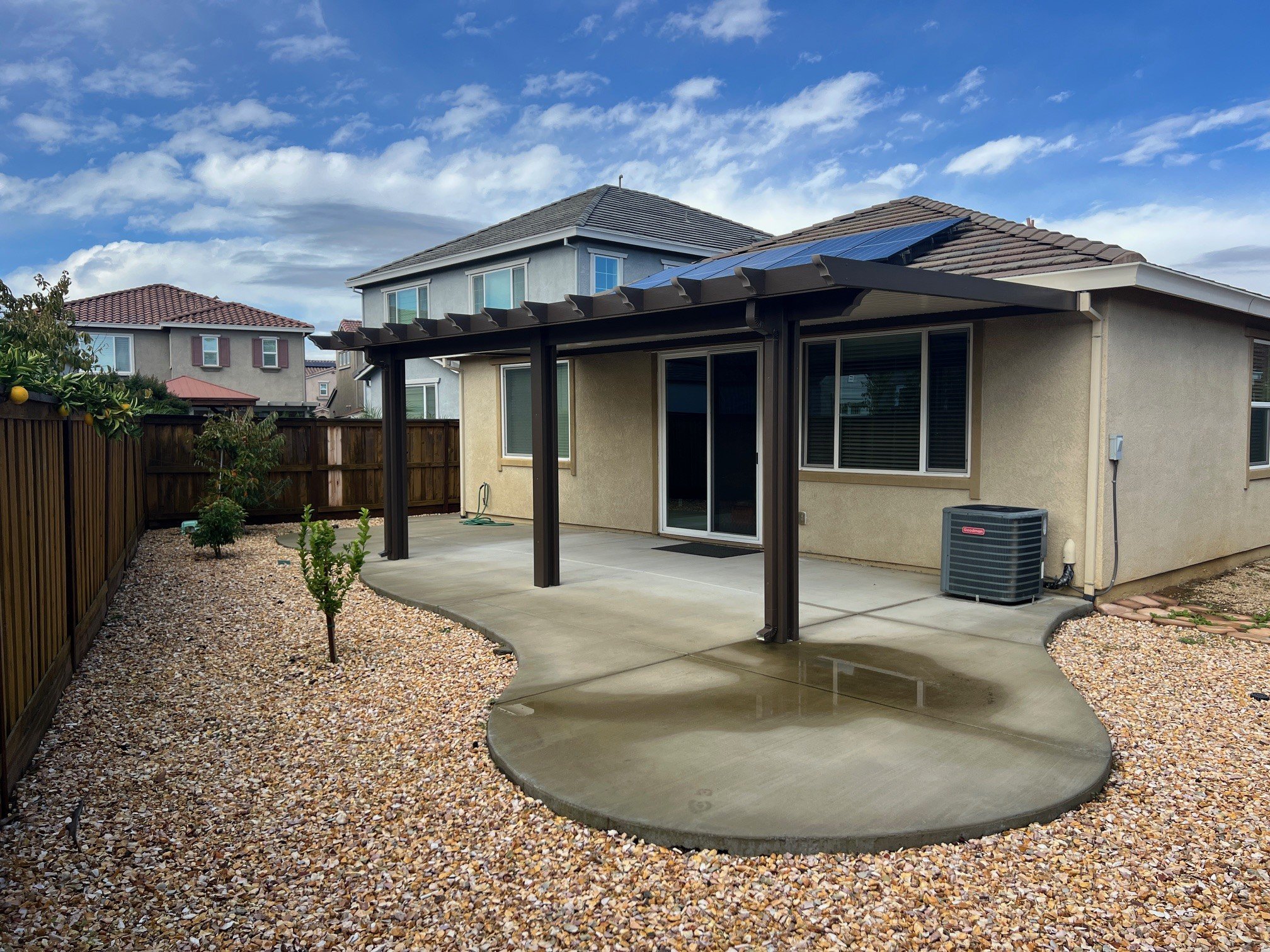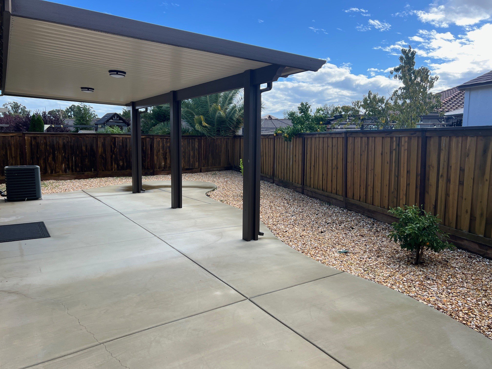 Outside, relax or entertain in the spacious backyard featuring a covered patio and a large concrete area—great for outdoor dining, gatherings, or play.