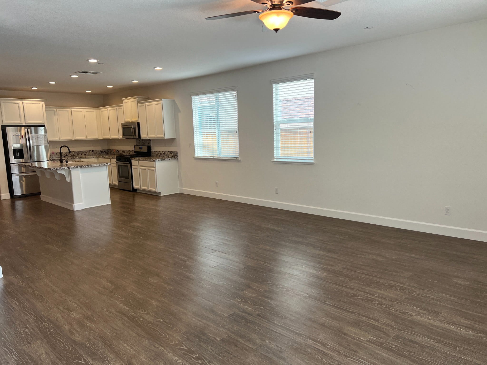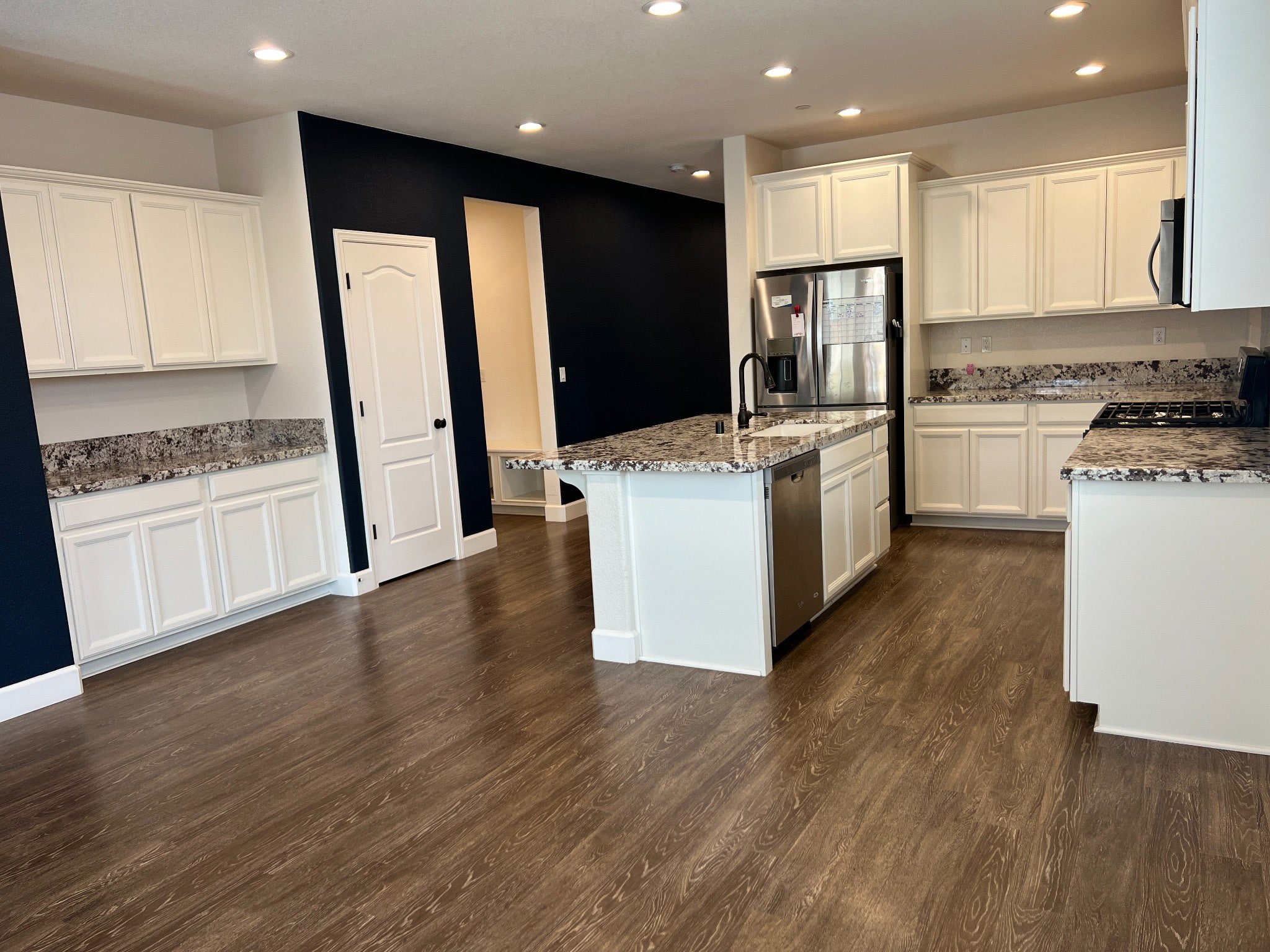 This home features an open floor plan with a large kitchen island, pantry, and a convenient coffee bar area—perfect for entertaining or everyday living. The kitchen comes fully equipped with all appliances, including a refrigerator, gas range, microwave, and dishwasher. A washer and dryer are also included.